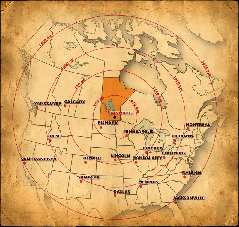 Click to view mapsIncludes distances to Winnipeg and distances from Winnipeg to Kississing Lodge.
